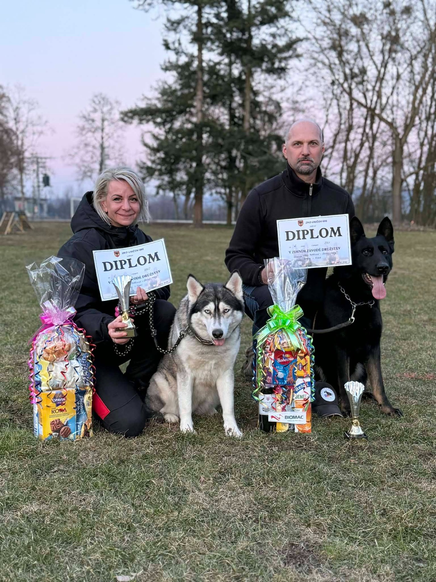 22.2.2025 Pro naši ZKO velmi úspěšný den na dnešním Zimním závodě družstev v Uničově. V kategorii ZM: poslušnost Katka Hrochová s Nixou 44 B. / obrana Pavča Strýčková s Coudym 43 B. Celkem družstvo 87 bodů a obsadili 3. místo