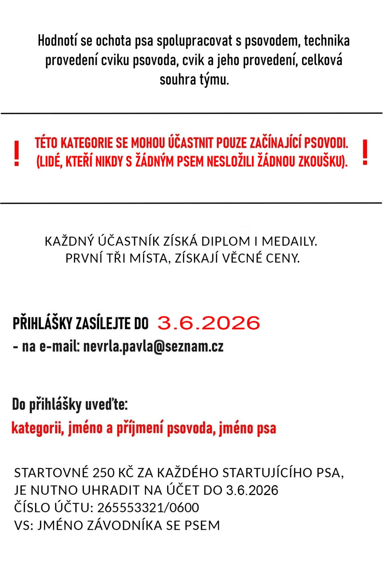 Trénink s Pepou Kubcem proběhne 22.3.2025.Čas bude upřesněn. Nutno se hlásit minimálně týden předem!!!!!!!